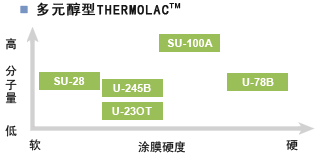 通過與各種聚異氰酸鹽的組合,可以獲得比通常的丙烯酸樹脂物性更加優(yōu)良的丙烯酸聚氨酯塗膜。此外,還擁有丙烯酸化醇酸型、一液固化型等系列產(chǎn)品。